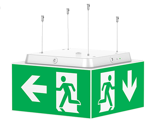 True cubic design with illumination on all four sides - ensures the “EXIT” sign is clearly visible from virtually any angle, effective up to 40 metres.